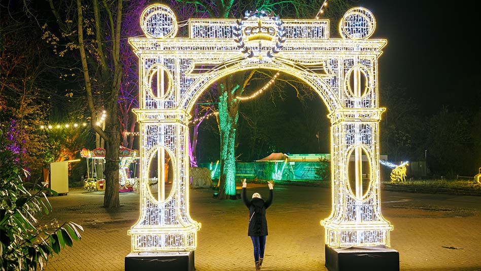 רכבת אור באורך 17 מטרים, שער רומא מואר בגובה של חמישה וחצי מטרים. שדרת עצים מוארת. אגם הלוטוס ובו עשרות פרחי לוטוס מוארים, כשהעצים סביבו מקיימים מופע תאורה מתוזמן. מנהרת אור אינטראקטיבית בה יתקיים מופע משולב של תאורה ומוזיקה, שמגיב לתנועת המבקרים. שביל הקליידוסקופ שהוא חוויה צבעונית של השתקפויות ותאורה דינמית. שביל הרקיע בו צמרות העצים מוארות באפקטים של כוכבים. החממה הגדולה שהפכה למתחם מופעי לייזר. במתחם האודיו־ויזואלי משתמשים המבקרים בקולות ובצלילים כדי להאיר את העצים. מיצג"אלף מטרים של אור” הוא שטח ענק המלא במאות אלפי נקודות לד, הנדלקות בתיאום עם פסקול מוזיקלי.