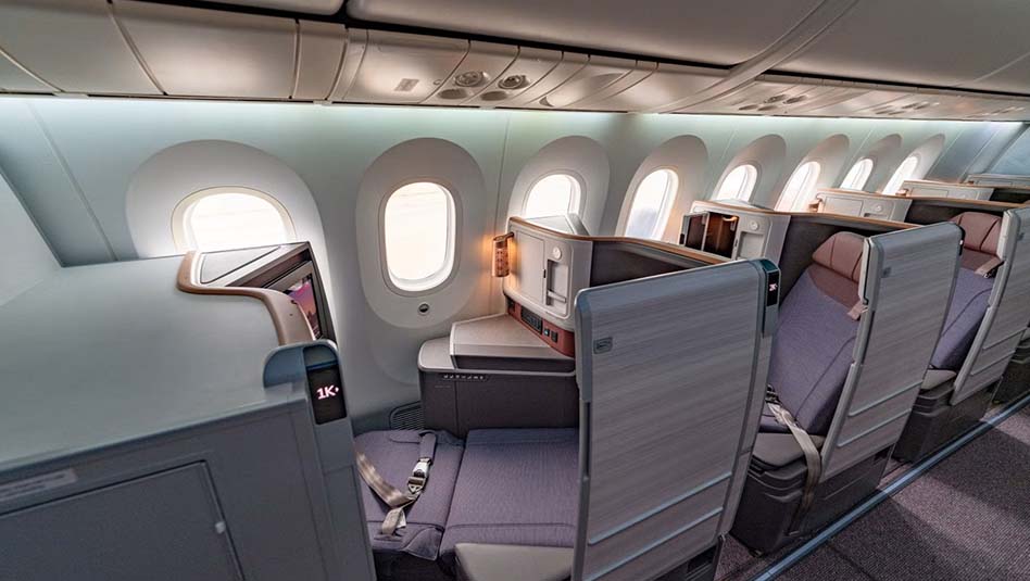 מחלקת עסקים (20 סוויטות): תצורת 1-2-1 המעניקה גישה ישירה למעבר לכל נוסע. הסוויטות מצוידות בדלתות הזזה לפרטיות מוחלטת, מיטה שטוחה באורך 79 אינץ', ומסכי 17 אינץ' ברזולוציית 4K QLED.