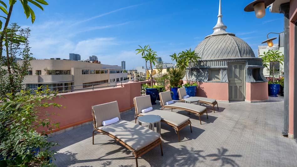 אחד החידושים הבולטים בפרויקט הוא הסבה של גג המלון לרופטופ אורבני אלגנטי, הכולל ג'קוזי, פינות ישיבה ונוף פנורמי לעיר. זהו מרחב התרגעות אינטימי ושקט המנוגד לקצב הסואן של לב תל אביב. בנוסף מציע המלון ספא, פטיו פנימי ירוק ולאונג' מעוצב – כולם מיועדים ליצירת חוויית אירוח אישית ורגועה למבוגרים בלבד.