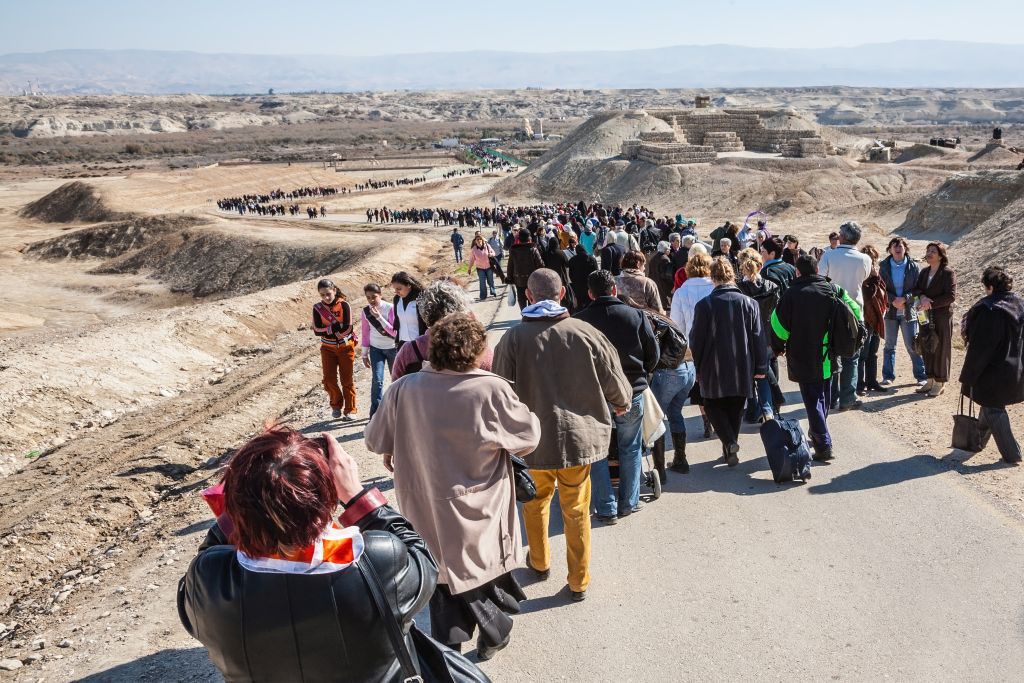 קבוצת צליינים צועדת במדבר. צילום Depositphotos
