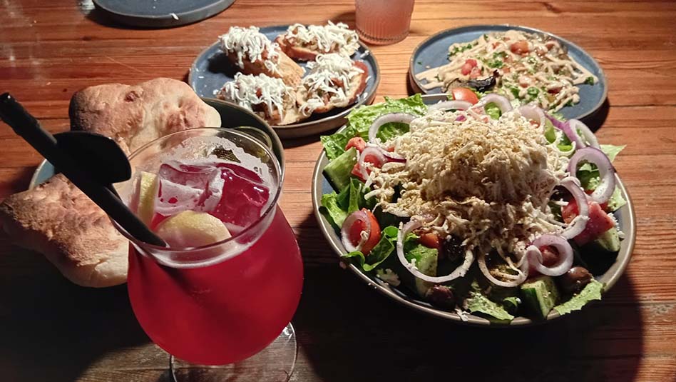 * אתנחתא עם שתיה כיד המלך וארוחה כיד המלכה – בפאב גרין בקיבוץ ניר עם.
