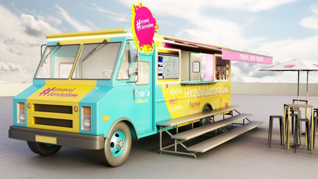 תחנות מידע לתייר בירושלים מורכבות ממשאיות ניידות על בסיס גרר. המשאית מעוצבת ומטרתה – הפצת מידע על ירושלים בכל הערוצים, טכנולוגיים ופיזיים, זאת כחלק משבירת הקונספט של דלפק מידע משעמם וישן, שבו מתקיים מרחק פיזי בין נותן השירות לבין התייר והוא מתבצר מאחורי הדלפק. משאיות המידע, הכיסאות והשולחנות סביבם, יוצרים אווירה של בית קפה קומפקטי קטן ומעוצב. המשאיות ימכרו טעימות של קפה, תה, שתיה קרה, חטיפים, ארטיקים, גלידות ובירה. לכל משאית יהיו שני שולחנות ו-5-6 כיסאות המוצבים מולה או מסביבה.