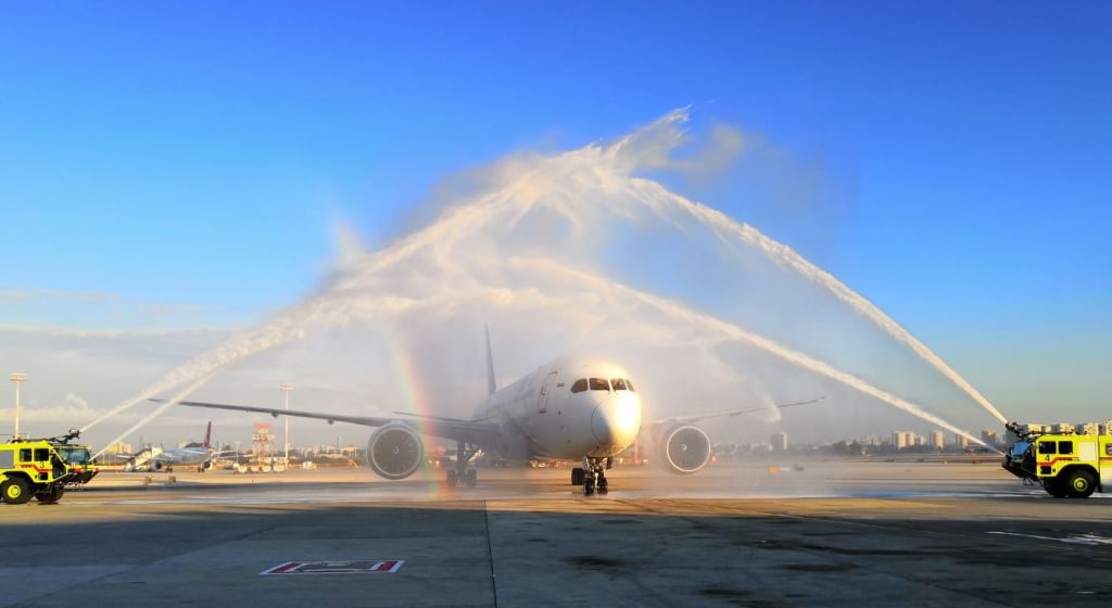 טקס ההסלנה למטוס הראשון של האינאן איירליינס משנזן בנתב"ג הבוקר. צילום שון מיכאל
