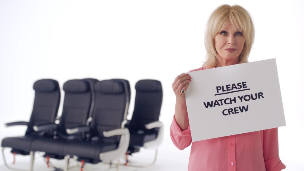 ג'ואנה לומלי, לנצח פטסי סטון מ"פשוט נהדרת", בסרטון ההדרכה של בריטיש איירווייס. צילום יח"צ