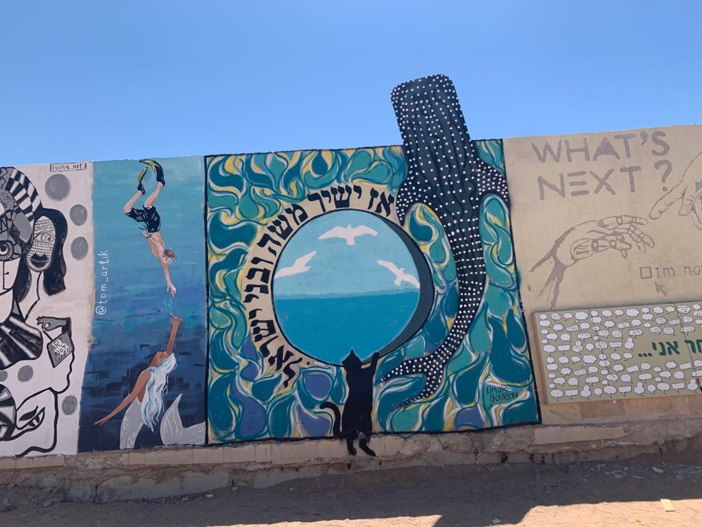 הקיר הצמוד למבנה הטרמינל המיועד להריסה הפך לכן ציור ענק עבור 13 אמנים, לאורך 27 מטרים
