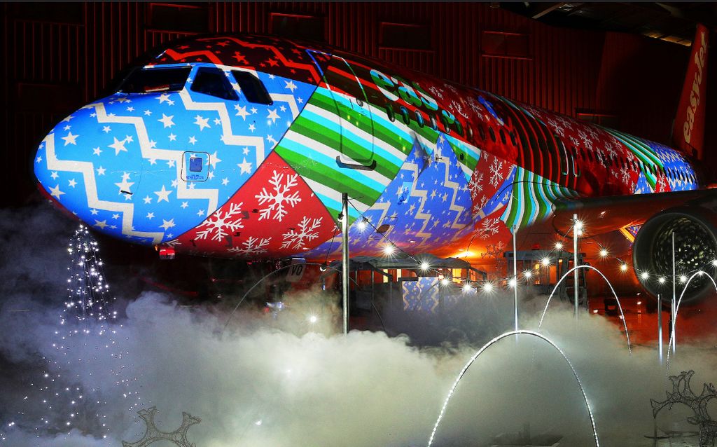 מופע אורות הכריסטמס הגדול בעולם על מטוס נערך בנמל התעופה לוטון שבלונדון